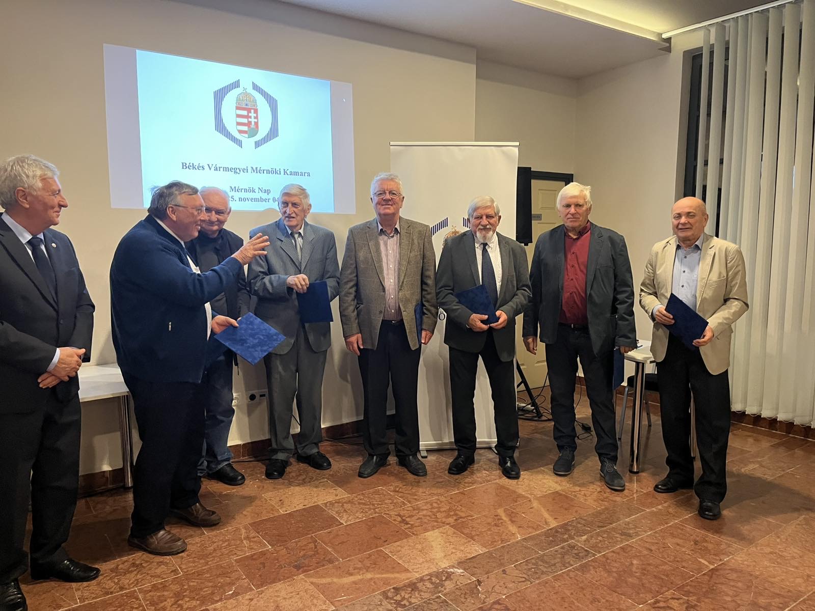 Tóth Tamás a Békés Vármegyei Mérnöki Kamara Hírközlési és Informatikai Szakcsoport vezetőségi tagja a kamaráért végzett kiemelkedő munkája elismeréseként Emlékplakettben részesült.  A Békés Vármegyei Mérnöki Kamara elnöksége Elismerő oklevélben részesítette Bak Sándor kamarai tagot, aki a Vízgazdálkodási-Vízépítési és Környezetvédelmi Szakcsoport vezetőségi tagja.  Az Elnökség Sajti Lajos kamarai tagot, aki a Tűzvédelmi és Munkabiztonsági Szakcsoport szakcsoportvezetője és a Gépészeti Szakcsoport vezetőségi tagja, elismerő oklevélben részesítette a kamaráért végzett munkájának elismeréseként.